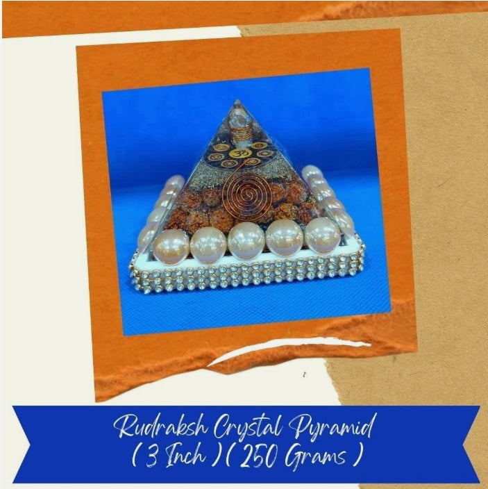 Rudraksha Crystal Pyramid 3 Inch Energized Activated For Good Luck & Prosperity