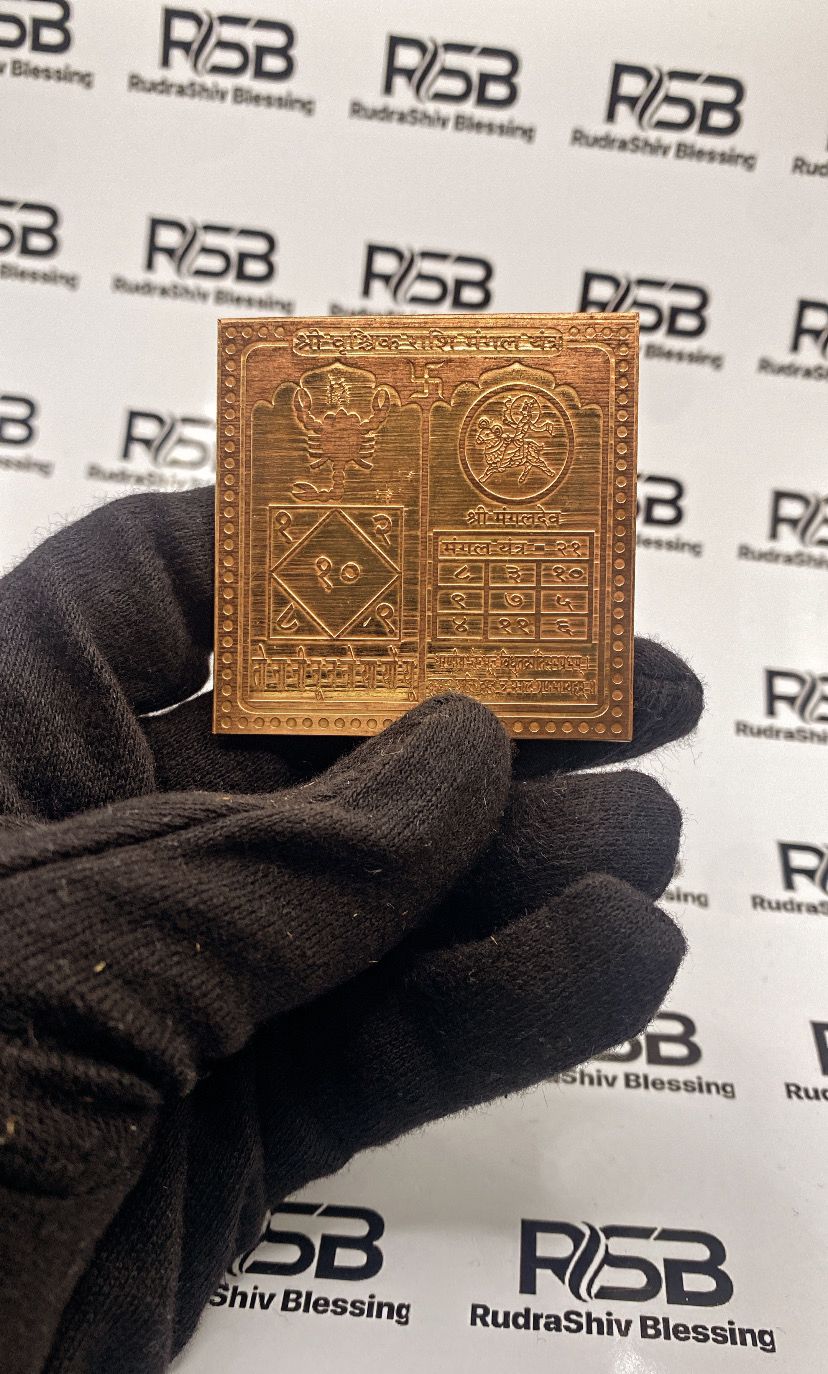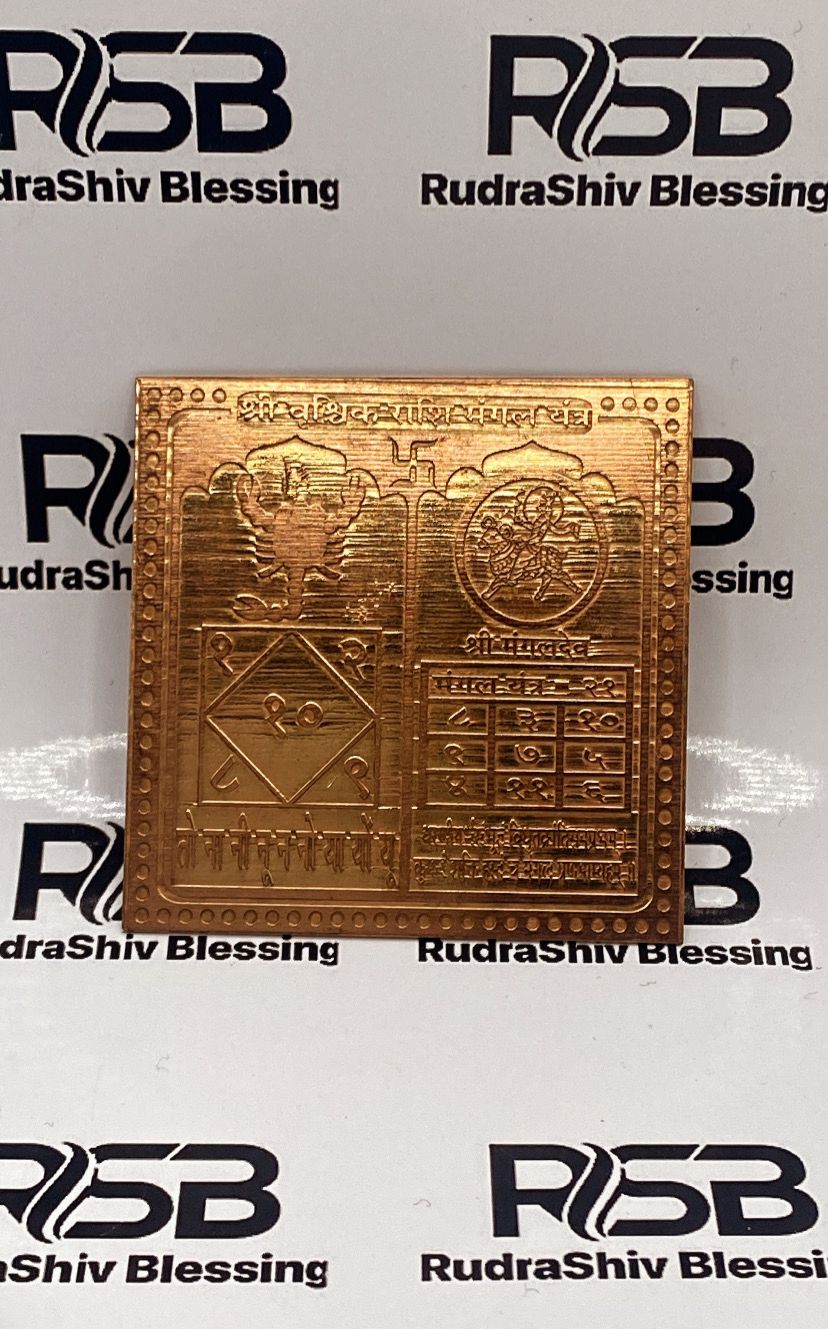 The Vrischik Rashi Yantra is a powerful sacred diagram devoted to individuals born under the Scorpio zodiac sign (Vrischik Rashi), ruled by Planet Mars (Mangal Graha). This yantra harmonizes the intense and mysterious energies of Scorpio, promoting emotional balance, courage, protection, and spiritual growth.